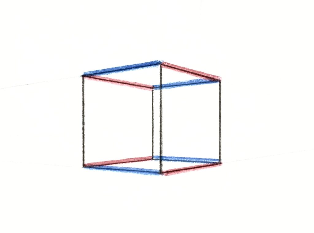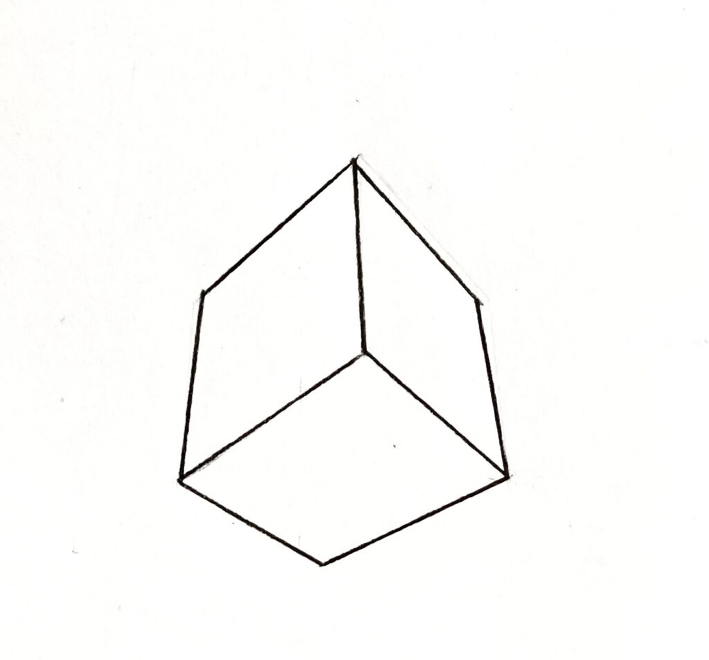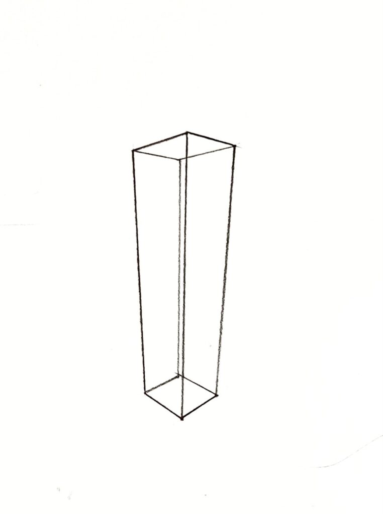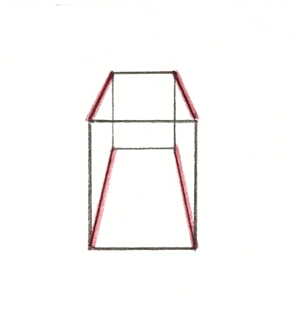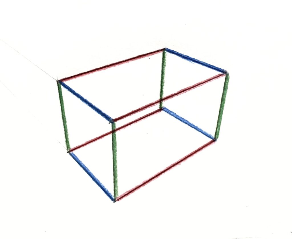 箱の横の辺はアイレベルに対して平行、高さの辺はアイレベルに対して垂直に描きます。
