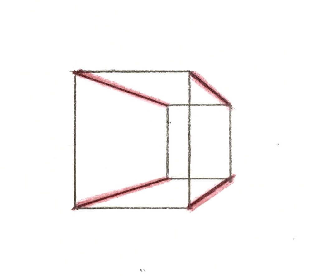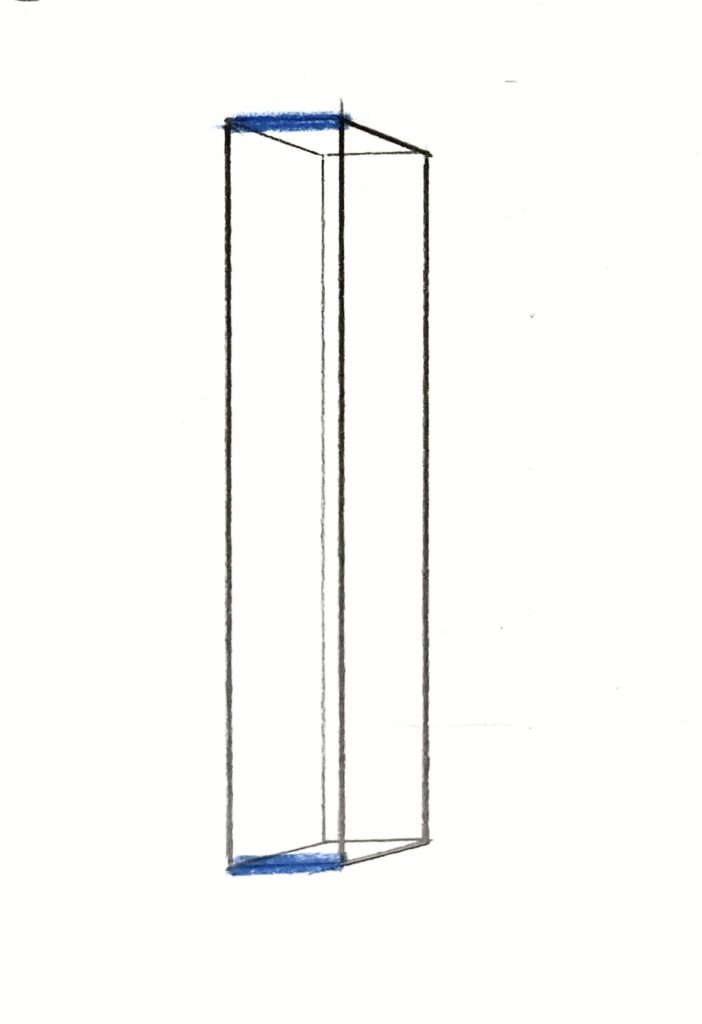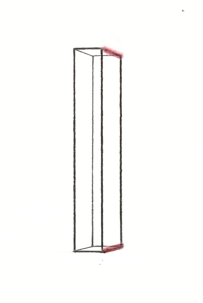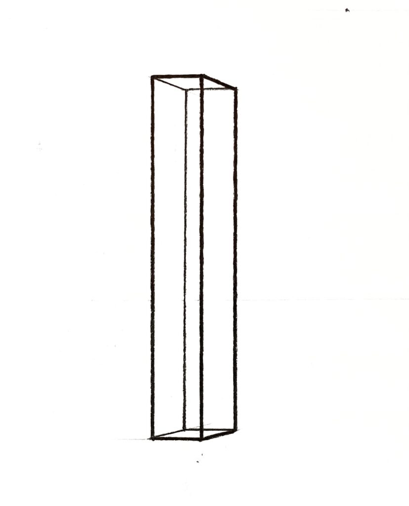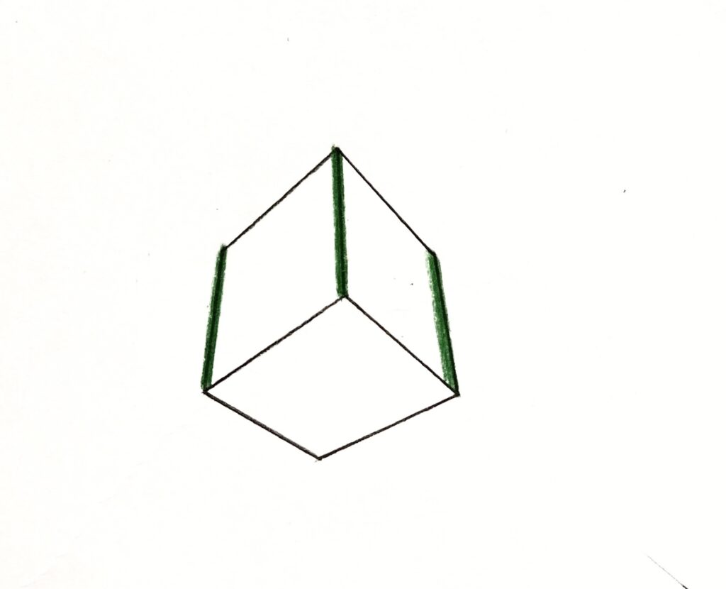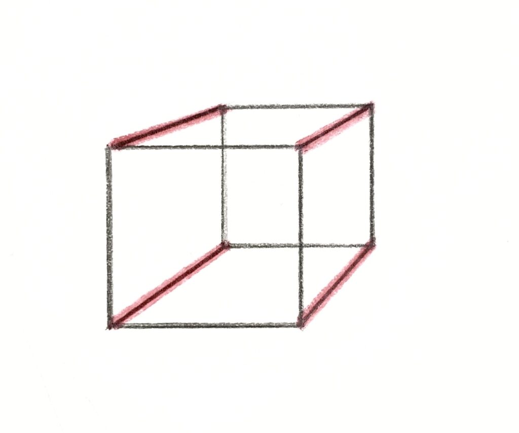 箱の横の辺はアイレベルに対して平行、高さの辺はアイレベルに対して垂直に描きます。
