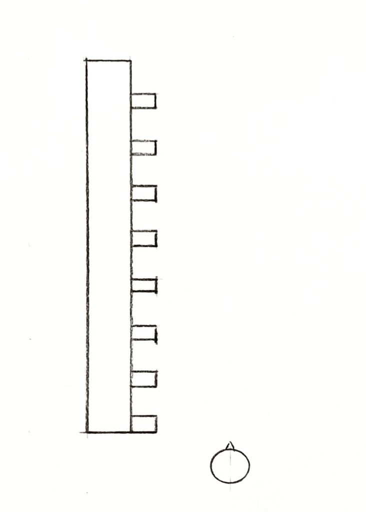 パースがつかない縦(高さ)の線(辺)は、アイレベルに対して垂直に描きます。