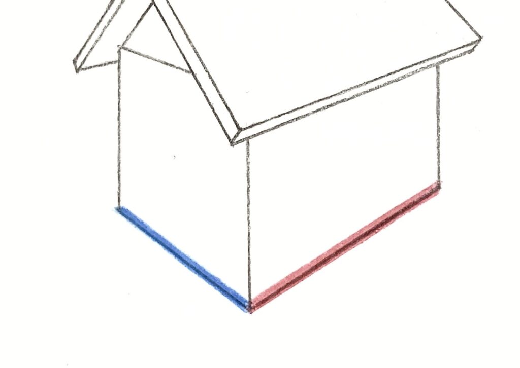 この建物も先程と同様に少し複雑ですね。この場合も、ある一部分に着目すると良いです。