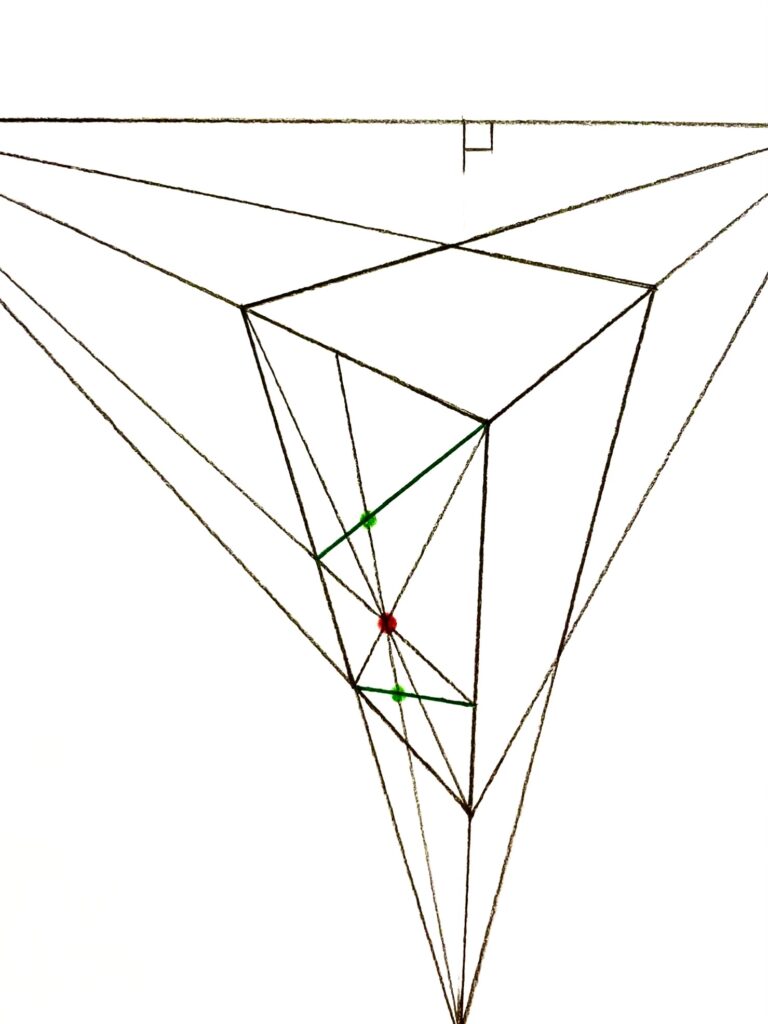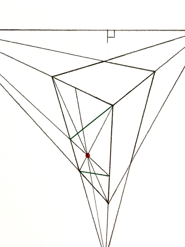あとは、この交点(緑の点)を通る横線を引けば、4分割の完成です。