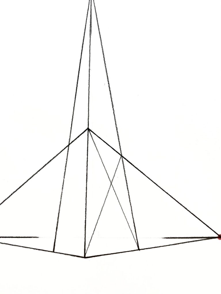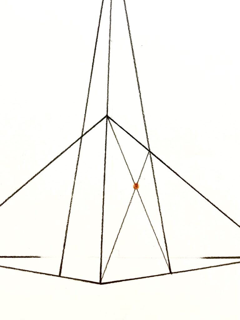 今はわかりやすいように濃く引いているけど、対角線は絵の一部ではないからなるべく薄く引こう!