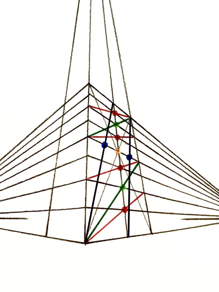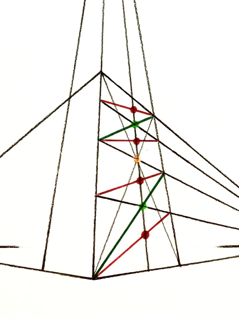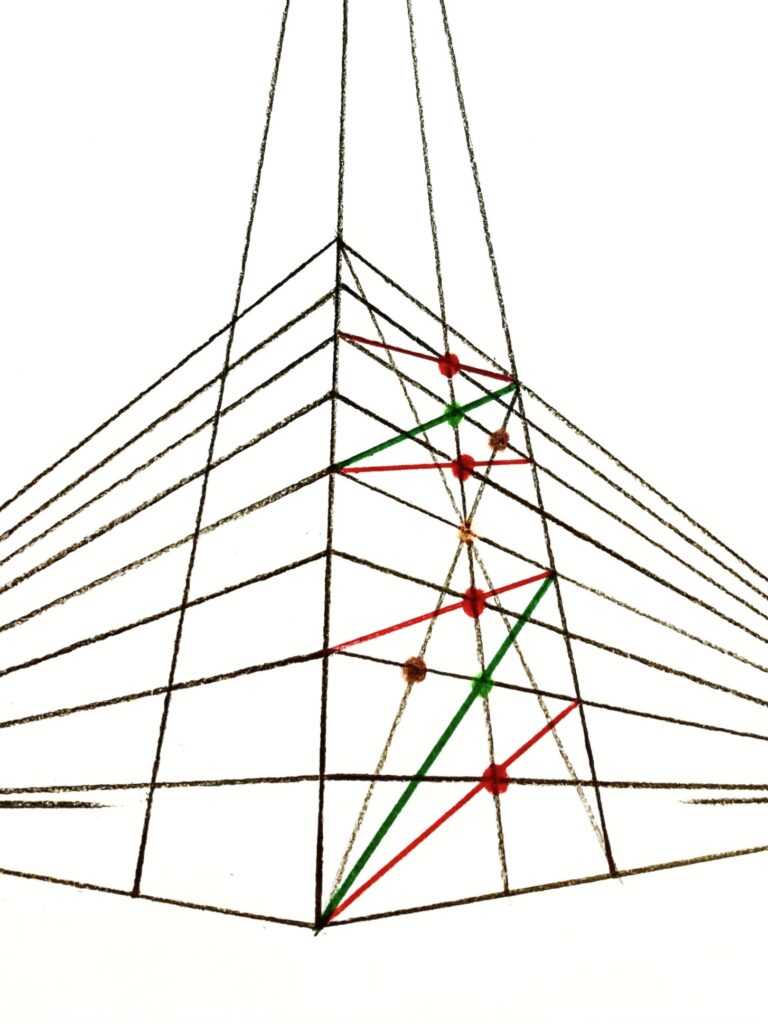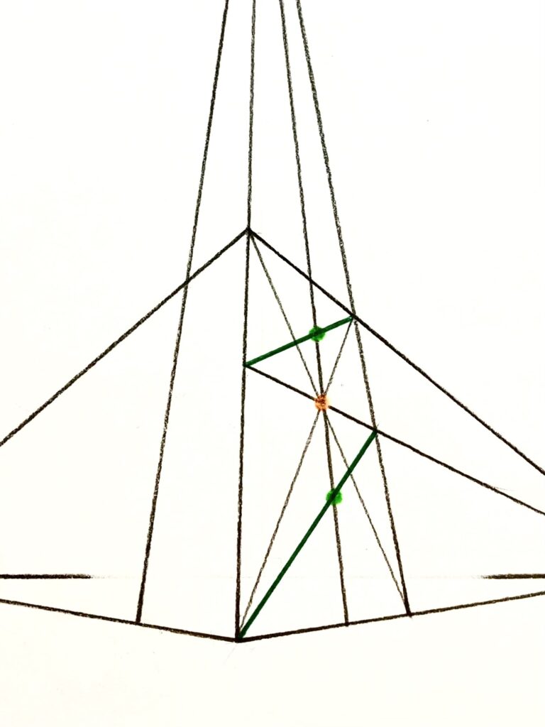 同じく、下から3本目の横線と、一番大きい長方形に引いた対角線との交点(茶色の点)が2つありますよね。