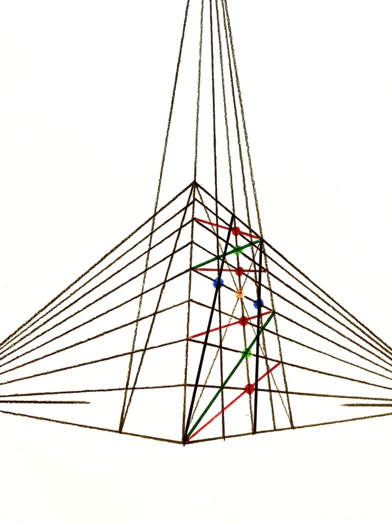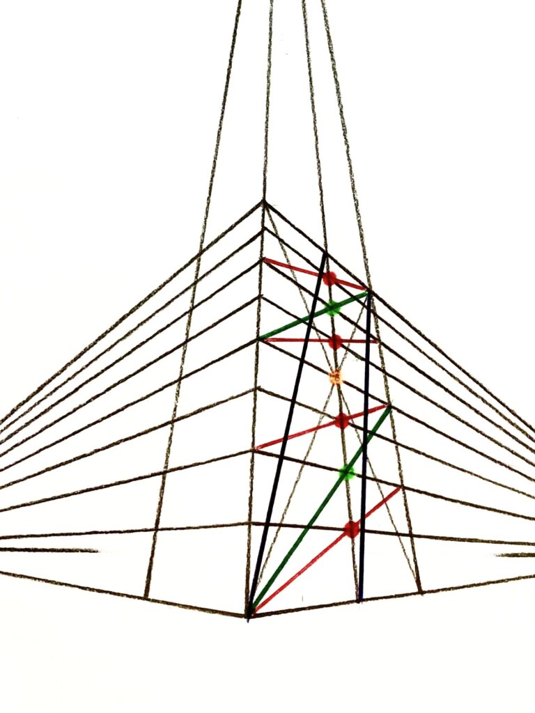 以下のように、上から3本目の横線と、一番大きい長方形に引いた対角線との交点(茶色の点)、