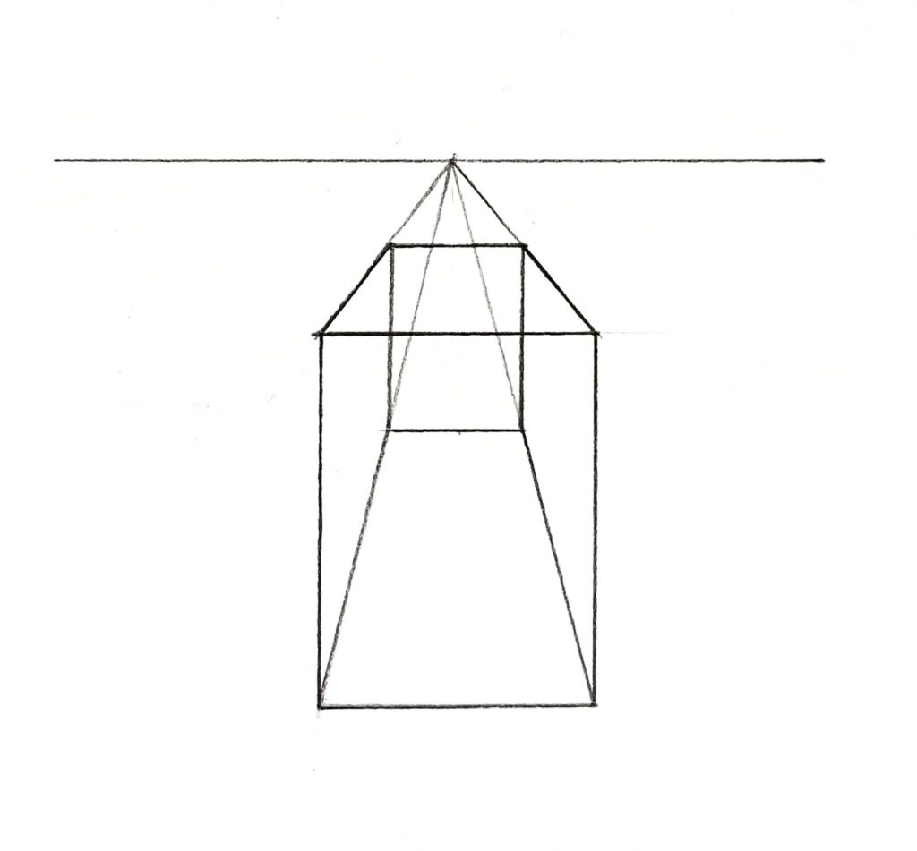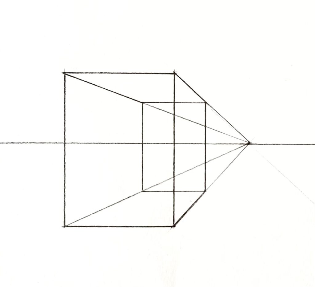箱の横の辺はアイレベルに対して平行、高さの辺はアイレベルに対して垂直に描きます。