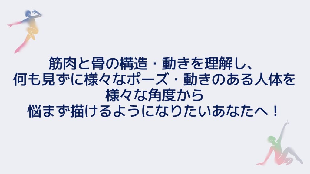 ☑️ 筋肉と骨の構造・動きを理解し、何も見ずに様々なポーズ・動きのある人体を様々な角度から悩まず描けるようになりたいあなたへ!
